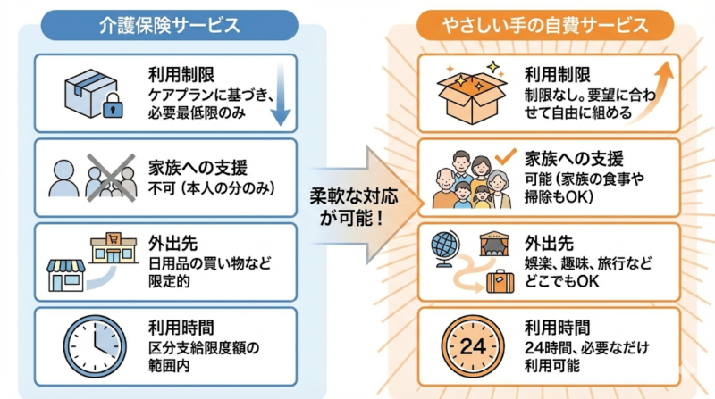比較項目介護保険サービスやさしい手の自費サービス