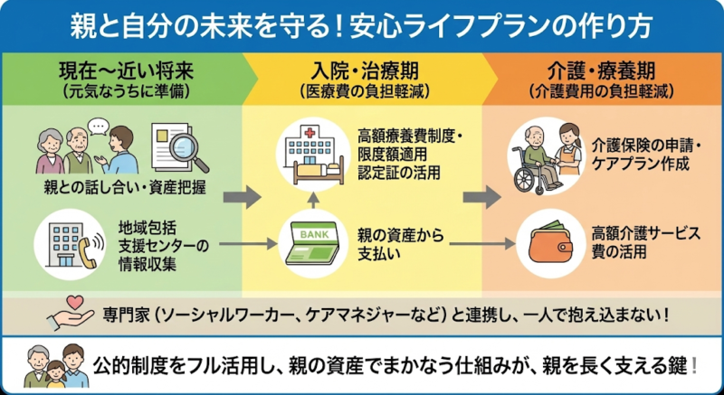 結論から言えば、「親の介護費用は、親の資産で賄う」のが鉄則です。そして、それを実現するための公的制度や、費用を抑える具体的な手続きが日本には用意されています。