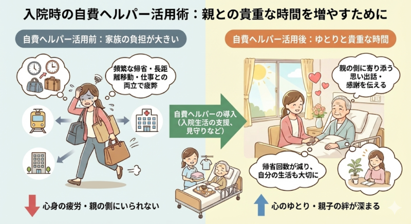 と自費ヘルパーで帰省する回数を